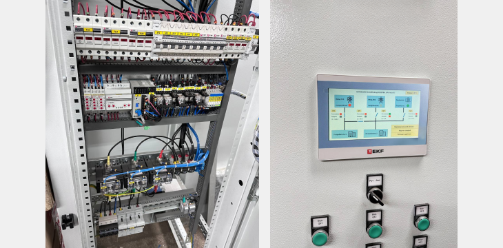 Автоматический ввод резерва (АВР) 3 в 2 с секционным аппаратом на оборудовании бренда EKF имеет два рабочих ввода на две секции и дополнительный резервный ввод от дизельного генератора (ДГУ). В основе системы лежит контроллер PRO-Logic. Он управляет автоматическими выключателями и обеспечивает быстрое переключение между основными и резервными источниками питания.