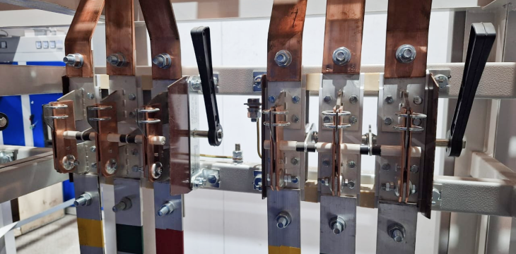 - Воздушные выключатели ВА-45 для проведения тока в нормальном режиме и защиты от сверхтоков в случае коротких замыканий и перегрузок. Они использованы в качестве вводных, для обеспечения защиты отходящих линий, а также в схеме автоматического включения резервного (АВР) питания;