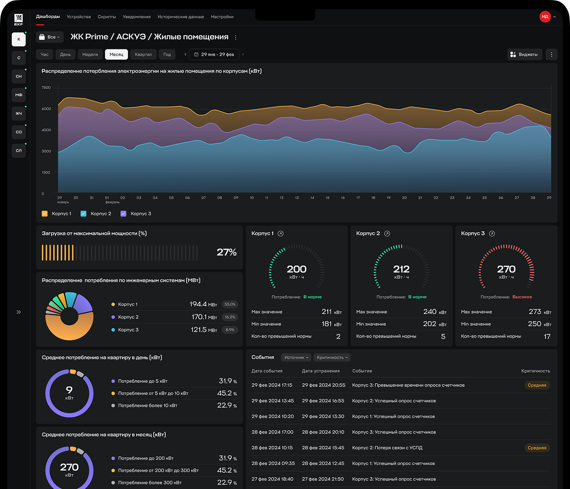 Автоматизируйте и контролируйте инженерные системы в жилых и коммерческих объектах. Снижайте издержки, оптимизируйте энергопотребление и создавайте комфортную среду для жителей.